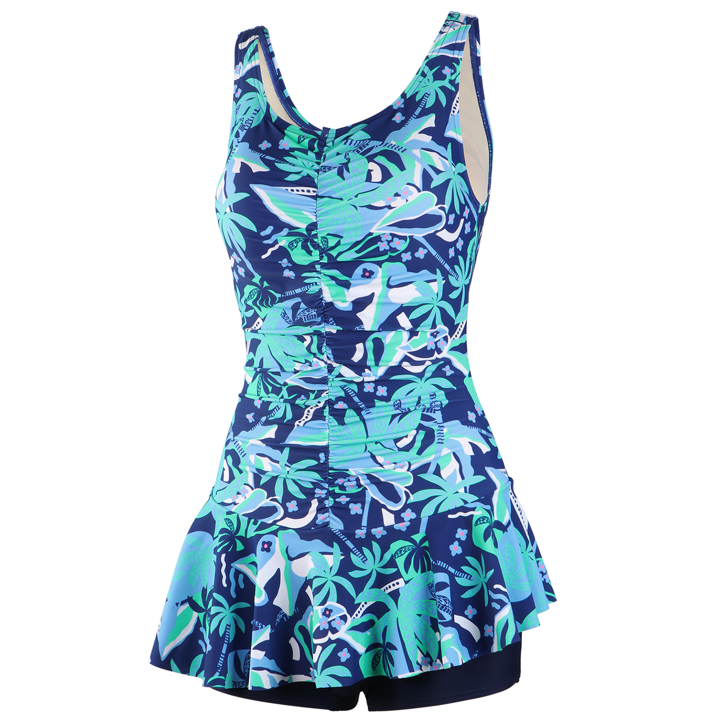 连体裙式平角裤泳衣